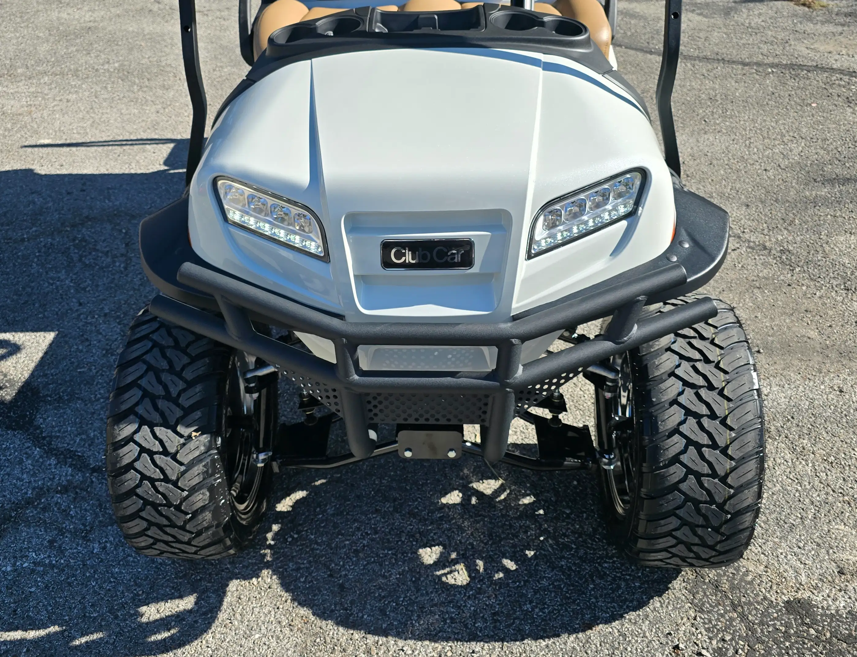 This 4-passenger golf cart features a robust 29 hp peak motor, an impressive 3.1 kWh Lithium-Ion battery, and highlights like LED lighting and a factory lift kit for enhanced performance.