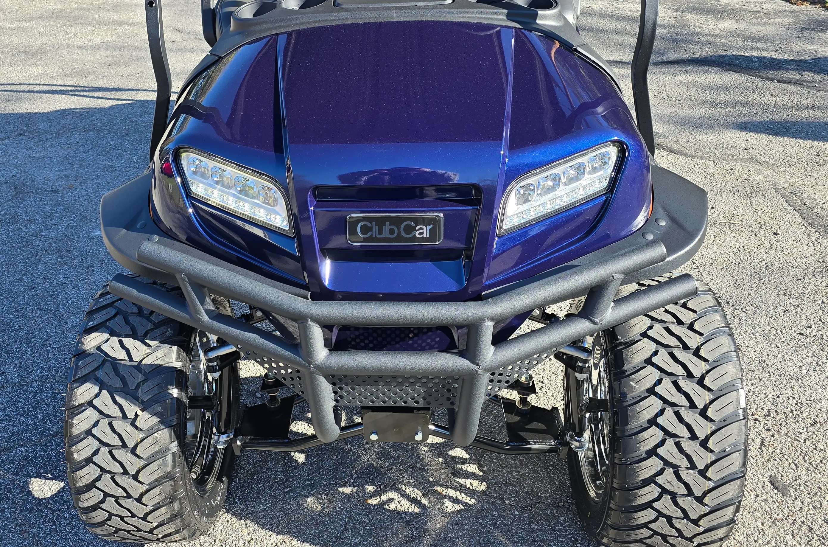 This 4-passenger golf cart features a robust 29 hp peak motor, an impressive 3.1 kWh Lithium-Ion battery, and highlights like LED lighting and a factory lift kit for enhanced performance.