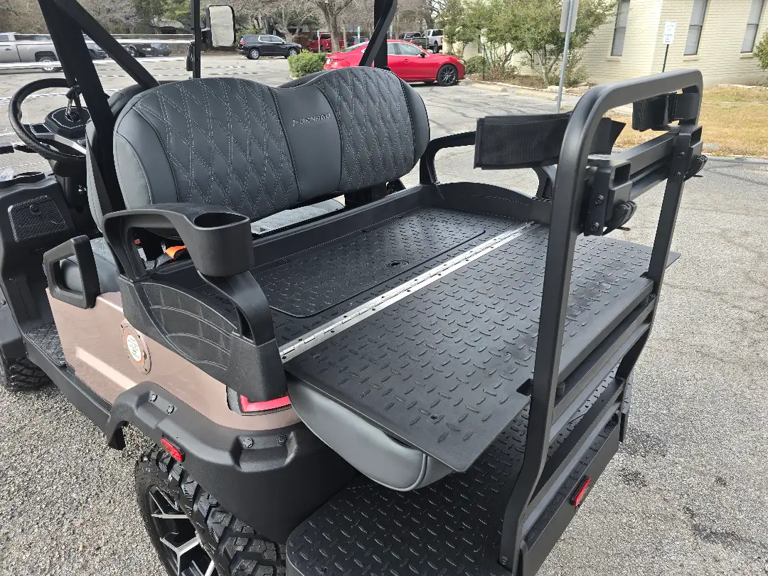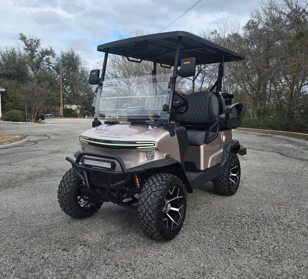 The 2026 Denago EV Nomad XL blends robust performance with modern efficiency, featuring a 5 kW AC motor paired with a 51.2V 105Ah LiFePO4 battery for up to 40 miles of quiet, emissions-free cruising. Its powder-coated aluminum chassis and 23-inch all-terrain tires provide stability and durability across diverse terrains.